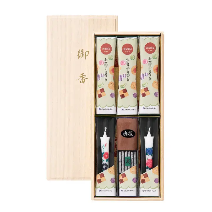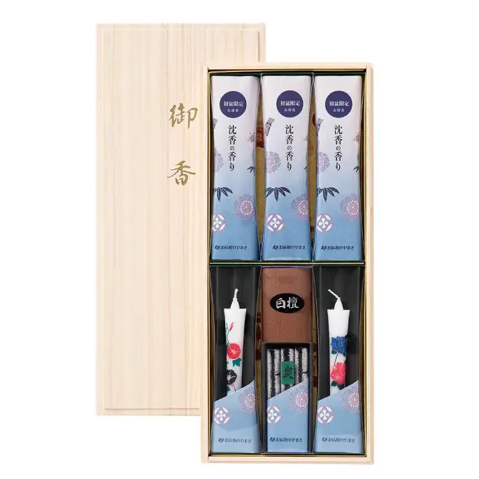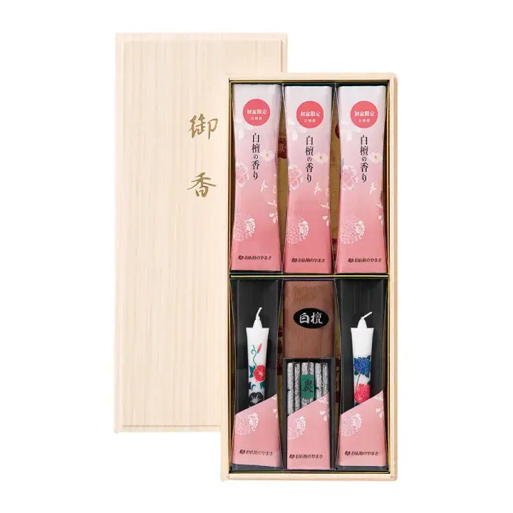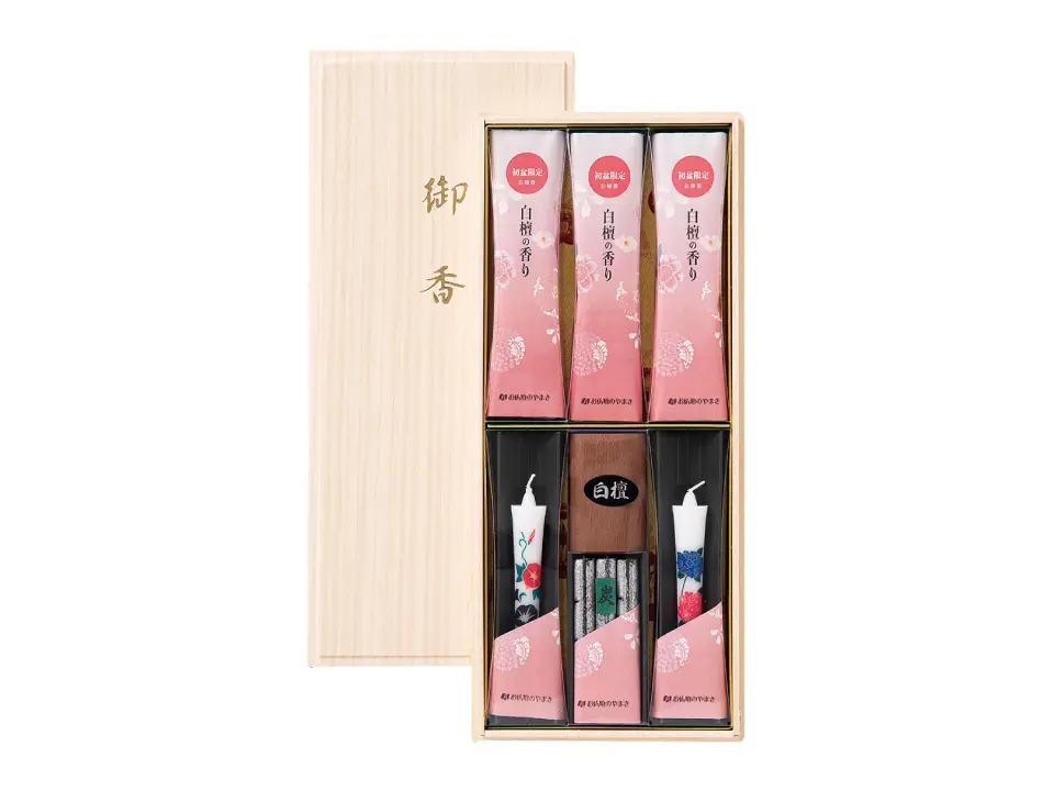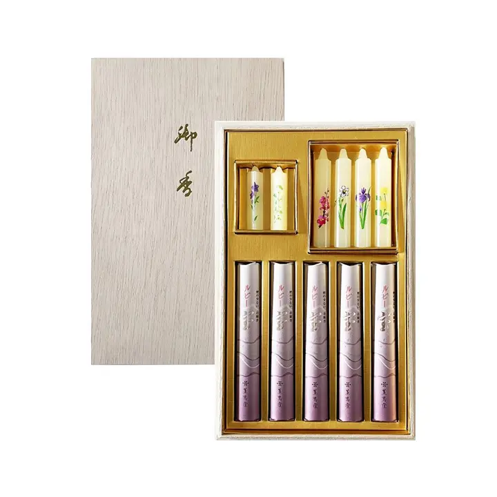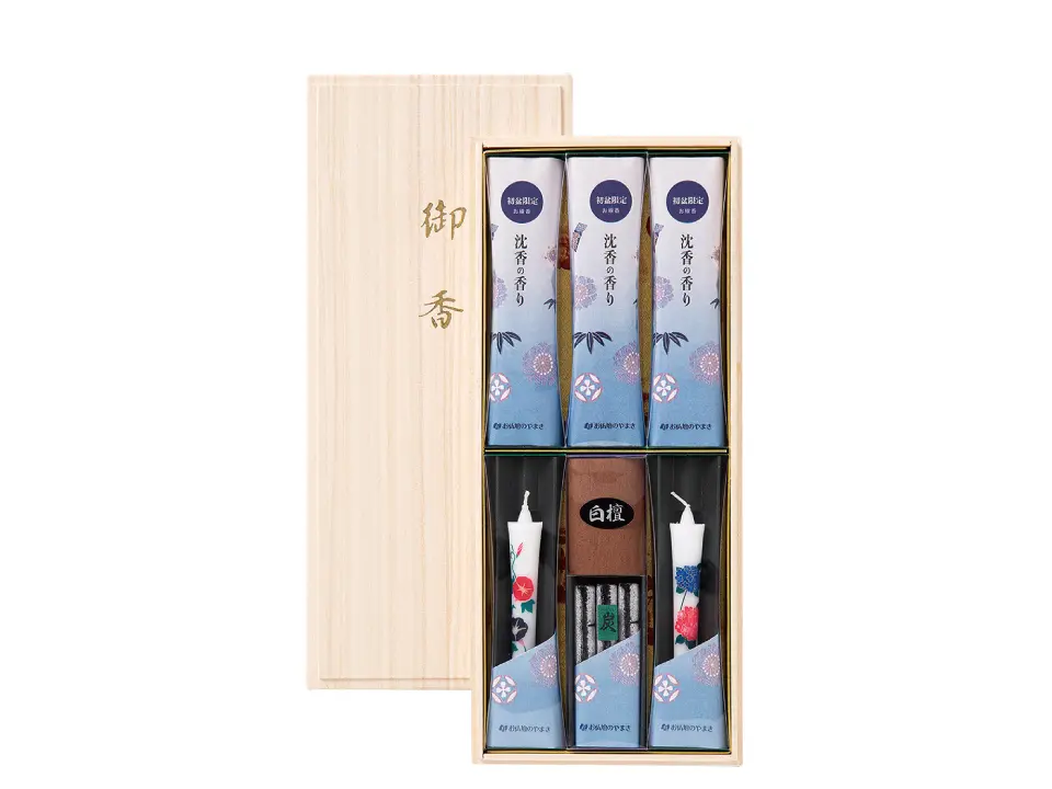 初盆など法事のお供えに、ご進物お線香セットやろうそくセットは最適です。
